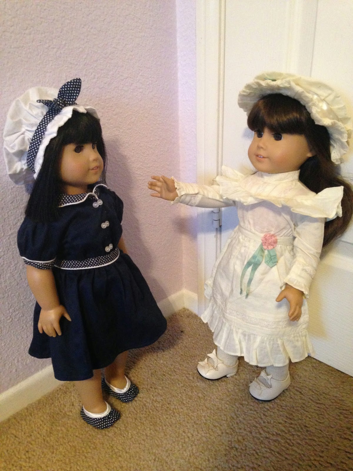 YES!!! I got Caroline during my trip to the American Girl store for Grace's debut! It was really special for me, since the last time I got an American Girl doll was probably more than five years ago. It feels like I'm just borrowing her, since she hasn't been part of the equation for very long. My first five dolls are a family, and I didn't feel right adding another girl into the mix, so I'm keeping her separate from them. But you will see more of Caroline, trust me.